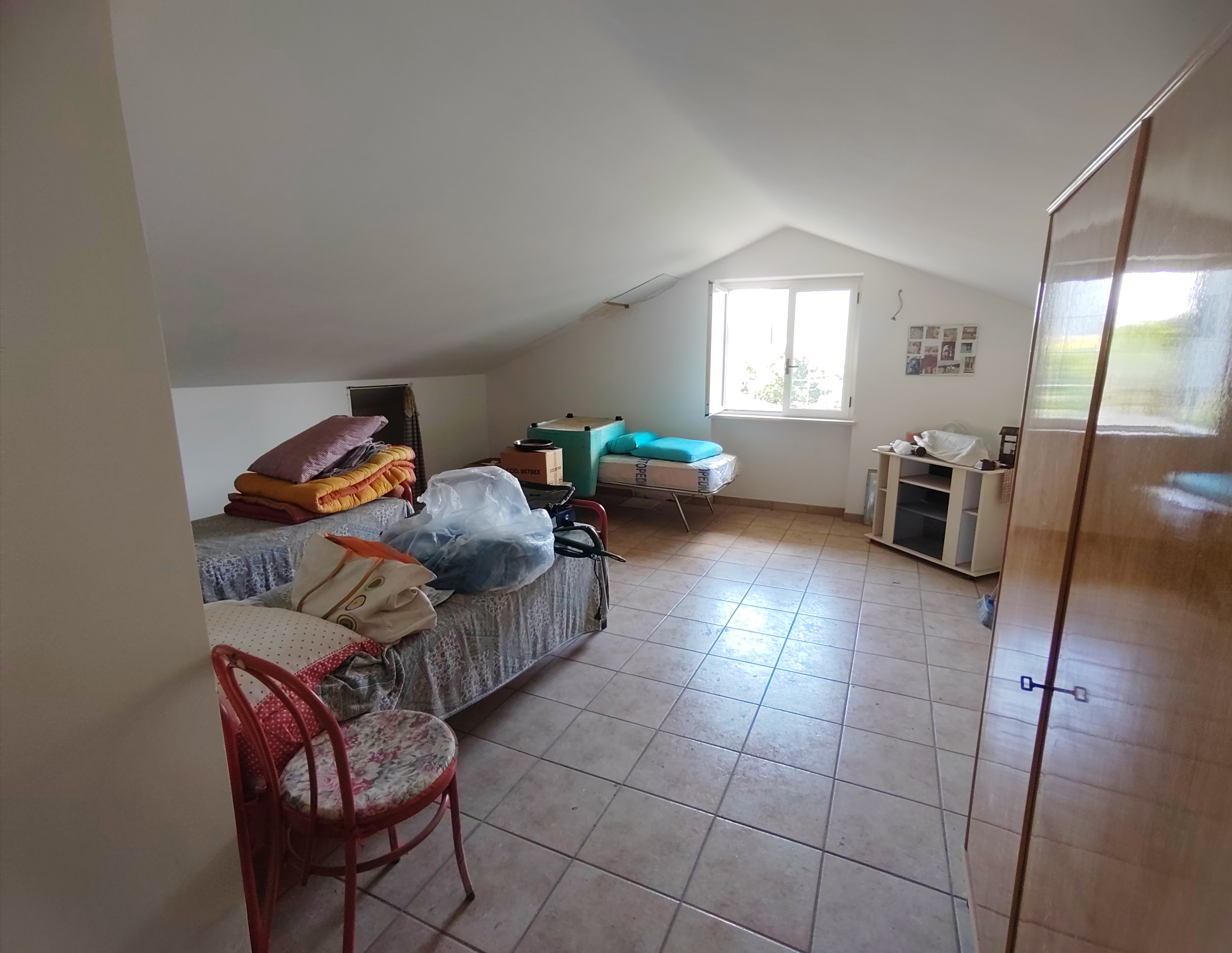 il piano superiore (mansardato) invece è composto da un'area living, due camere matrimoniali, un bagno e terrazzino.